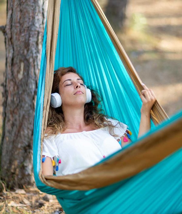 • Може да се закачи навсякъде, където Ви хрумне. Намерете две дървета на подходящо разстояние, греди или дървени колове, връзвате въжетата и закачате карабинерите. Може да се ползва и като практично одеяло за пикник. Дори е възможно да го закачите и у вас, между две стени. Моделът се предлага в различни цветове, но конкретно този е подходящ за гората, планината – всъщност там, където ще бъде в унисон със зелената природа.