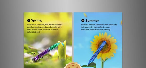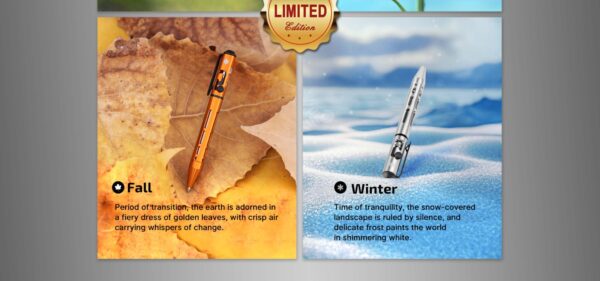 Комплектът химикалки Olight Open Mini 2 е от 4 броя „Пролет“, „Лято“, „Есен“, „Зима“ малки и скрити с дължина 9,3cm, която може да бъде напълно скрита в джоба на ризата ви. Open Mini 2 е универсална химикалка с болтово действие, която съчетава химикалка и връх на молив в един елегантен дизайн. Корпусът от алуминиева сплав е здрав и устойчив на износване. Предлага се с фино обработени кухи спирали за динамичен и стилен външен вид. Персонализиран пълнител с накрайник от неръждаема стомана PREMEC и причинява по-малко петна от мастило. Механизъм с обратен S-образен болт, този механизъм прави превключването между писалка и молив без усилие, като същевременно предлага забавна фиджет функция. Забавно за игра и страхотен дизайн за предотвратяване на неволно включване. Удобна щипка, с която просто закачете писалката здраво за вашия бележник, джоб или каишка на раницата, когато приключите с писането. Син декоративен пръстен, орнаментална капачка на опашката, подобна на патрон, и пълнител в черен цвят, за да създадете възможно най-доброто изживяване при писане.