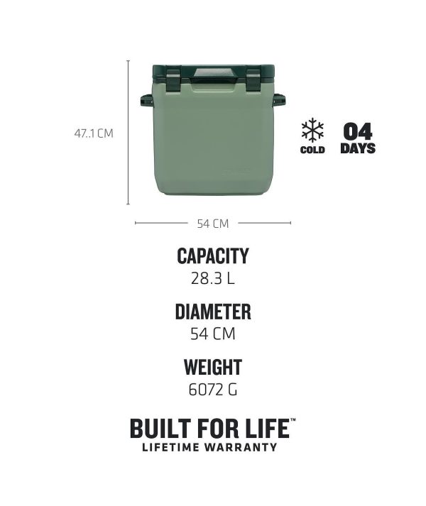 Хладилна чанта Stanley – The Cold for days 28.3 l ще отговори на предизвикателството и на най-горещите дни. И ще оправдае очакванията и на най-големите приключенци. Хладилна чанта Stanley -The Cold for days, 28.3 l е върхово постижение в стогодишната история на лидера в производството на продукти за хора с приключенски дух – Stanley. С тази хладилна чанта ще поддържате храната и напитките си приятно охладени поне 4 денонощия, дори в най-горещите температури. Достатъчно голяма, надеждна и устойчива на всякакви условия, тази двустенна хладилна чанта ще подсигури студенината на безценните ви напитки за поне 4 дни напред. Кенчета, стъклени бутилки, дори галони – всичко ще се събере в нея, при това в големи количества – за цялата компания. Може да разчитате на Хладилна чанта Stanley – The Cold for days 28.3 l дори когато ви е необходима масичка или табуретка.