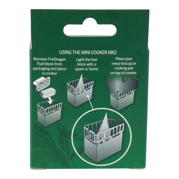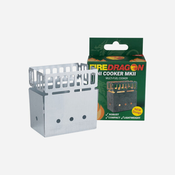 Компактната сгъваема печка BCB Fire dragon mini cooker MK2 CN375 е малка готварската печка, идеална за всички дейности на открито. В печката могат да се съхраняват две блокчета с горивен гел.