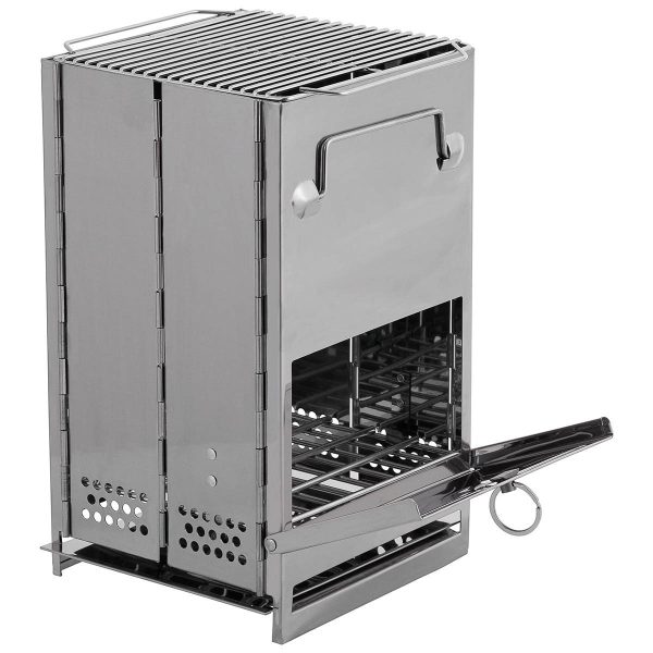 Ракетна печка Max Fuchs Rocket Stove сгъваема, с решетка, неръждаема стомана Средна