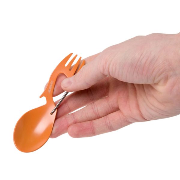 Ако излизате на къмпинг, на туризъм или обичате да обядвате на път, знаете, че не можете да живеете без: Kershaw Ration 1145. Универсален инструмент за хранене. С лъжица, вилица, карабинер и отварачка за бутилки ще имате всичко необходимо за хранене, докато сте на път. Тoзи „спорк“ е направен от хубаво парче неръждаема стомана. Следователно ръждата няма да е проблем