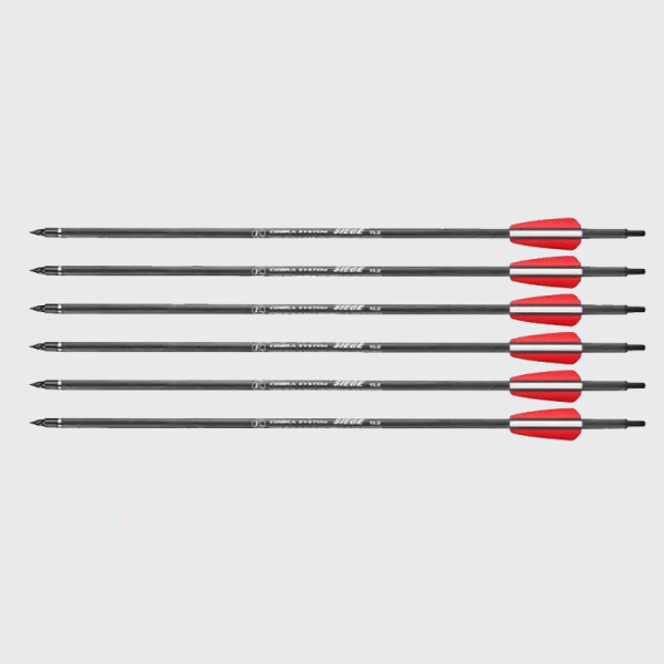 Стрелите на Cobra Siege 300 са специални, защото имат 3 пера, едно бяло и две червени. Бялото перо влиза в релсата, която подравнява прореза с връвта.