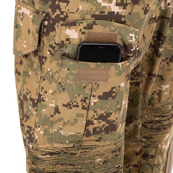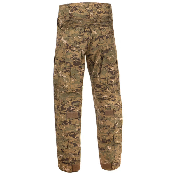 Тактическите панталон Invader Gear Predator Combat Pant са проектирани да осигурят ново ниво на мобилност, циркулация на въздуха и защита, което потребителят няма да намери в класическите панталони. Изработени са от Rip-Stop плат (60% памук / 40% полиестер), което ги прави леки и издръжливи. Освен това съхнат бързо – независимо дали е горещ ден или дъждовно време. Под колана и около коленете е разположена еластична материя за комфорт и висока мобилност. Допълнително ниво на защита се осигурява от включените подложки, предназначени да предпазват ставите чрез ефективно разпределение на енергията на удара. Те могат да бъдат плътно прилепнали към потребителя благодарение на регулиращата система от вътрешната страна на горните джобове и каишките около коленете. Потребителят разполага с редица джобове: 2 отворени на талията, 2 големи карго джоба от всяка страна на задната част на бедрото със закопчалки тип „велкро“ и 2 средни отпред, 2 малки джоба в областта на долната част на крачола и още 2 джоба на задната част. Отпред можем да открием висококачествен цип YKK със закопчаване тип „велкро“. Каишка минава около вътрешната част на талията, за да регулира размера и. Подобни каишки са разположени около глезените, за да се приспособят към обувките на потребителя. Големите гайки за колан позволяват използването на широка гама от тактически колани.