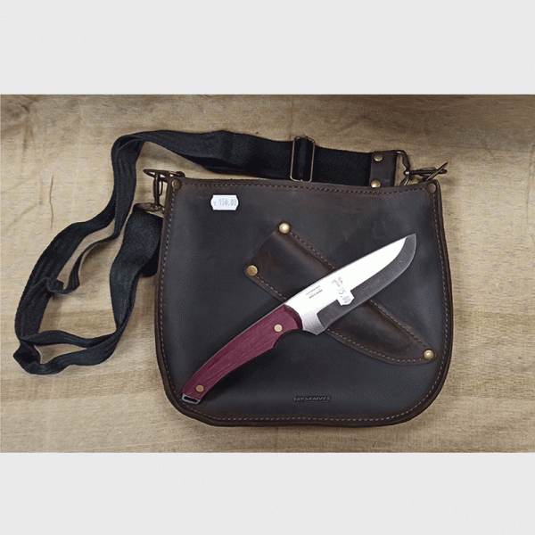 Чантата BPS Knives Leather Shoulder Bag With Sheath е чанта през рамо от естествена кожа с калъф за нож. Най-новият продукт на BPS Knives има има регулируема презрамка, удобна и здрава дава възможност бързо да извадите ножа от ножницата и да го върнете обратно.