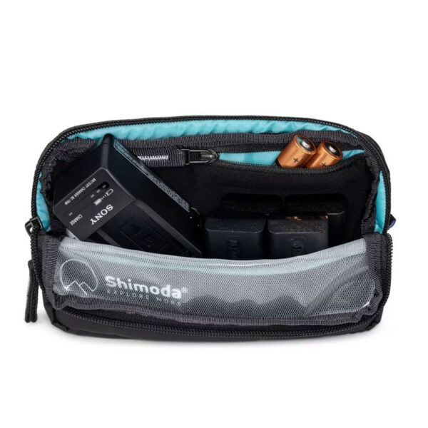 Калъфът за батерии и аксесоари Shimoda е добро решение за съхранение на вашите фотографски аксесоари, като резервни батерии или кабели. Може лесно да бъде закачен към колана на панталона или раницата, за да имате по-бърз достъп до вещите, и е достатъчно компактен за да се побере в джоба на якето ви или в чантата. Калъфът има PU прозрачен прозорец, който позволява лесно да видите съдържанието вътре, и е изработен от PU смола, която заедно с надеждните YKK ципове защитават добре аксесоарите ви. Малкият вътрешен джоб осигурява по-добра организация.