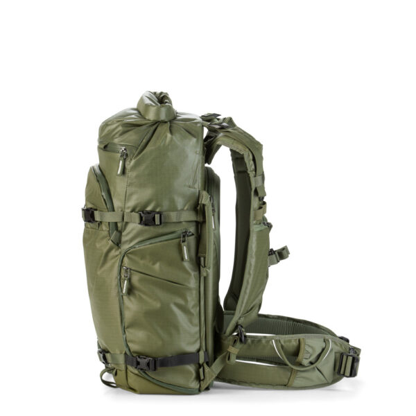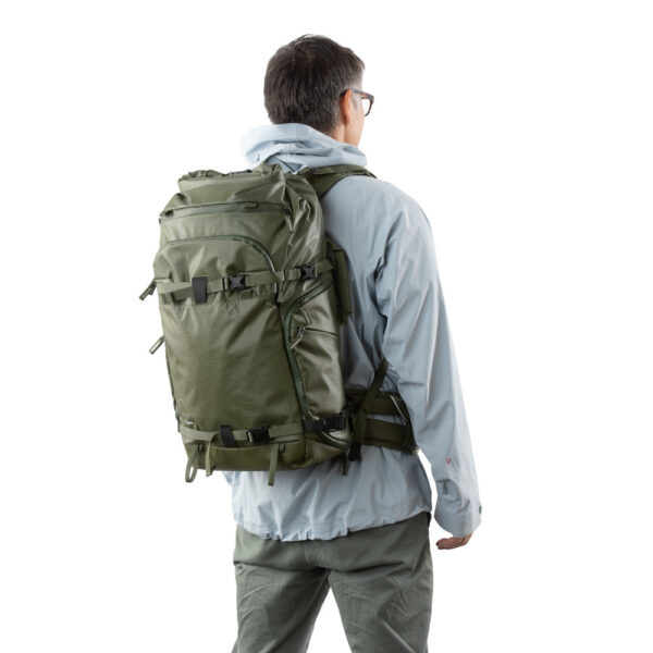 Планинската раница за оборудване Shimoda ACTION X30 30L е нашата дръзка линия планински раници за екстремни условия. Вече не е нужно да избирате между фотографска или спортна раница. Създадена за несравнимо изживяване, иновативна и тествана в реални условия, това е нашата нова колекция, която ще побере с успех, както фотографското ви оборудване, така и скиорската ви екипировка. Модел X30 ще побере удобно повечето безогледални и DSLR камери (до Canon 5D) чрез нашите основни модули*. Раницата се продава без основен модул в комплект, което дава възможност да изберете допълнително размер, който пасва на вашите нужди и оборудване. Горният рол-топ джоб на раницата се разгъва и добавя допълнително място за личен багаж, в случай на нужда, освен основното място на раницата. Ако сте скиори, моделите Action X разполагат със специални странични каишки, който могат да държат комплекта ски, подвижният холдер с каишки за каска позволява на потребителите да закрепят каските за планинарство, ски или велосипеди от външната страна на раницата си. Коланът за кръст Action X също може да се сваля, при нужда, и разполага с два джоба с цип за носене на повечето телефони, бутилки с вода или лични аксесоари. Action X30 разполага с обновена система за страничен достъп с по-широк и по-гъвкав отвор.