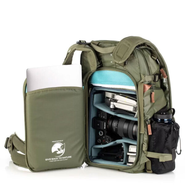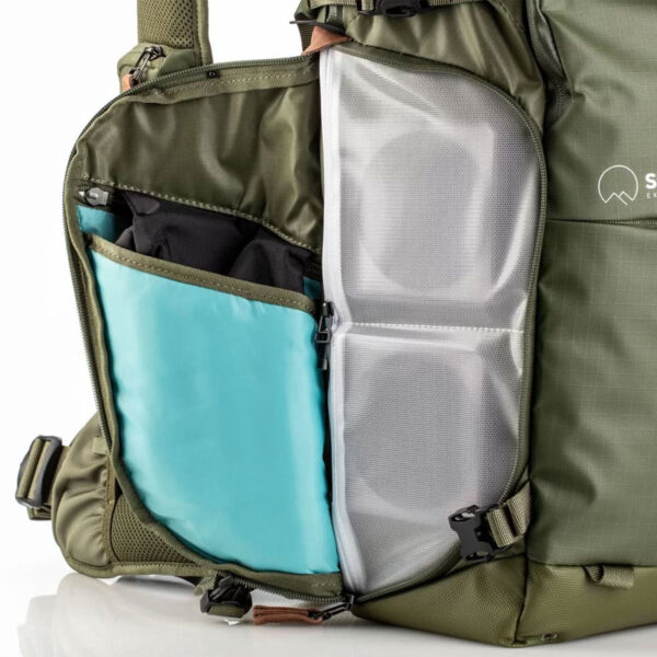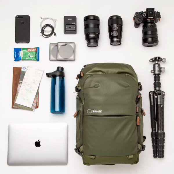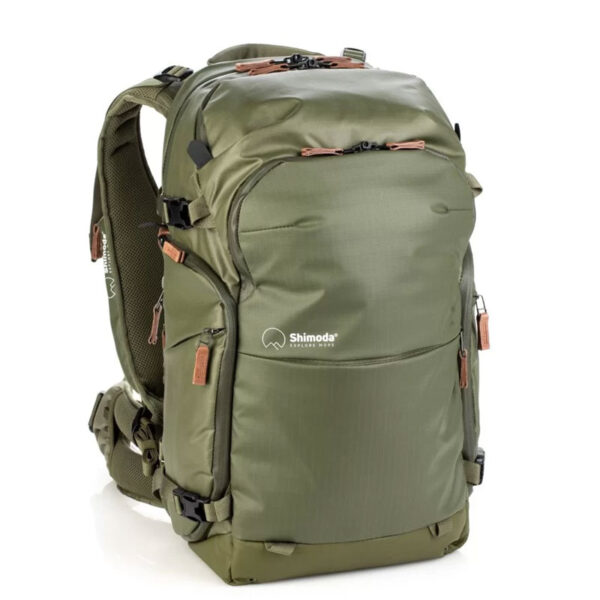 Планинската раница за оборудване Shimoda Explore V2 35L е най-големият размер от серията Shimoda Explore. Серията е създадена специално за фотографи, търсещи емоцията от преживяванията сред природата, но също и изискващи комфорт, компактност и лекота. Explore отговаря на строгите изисквания на международните разпоредби за ръчен багаж, но същевременно с достатъчно място да побере най-необходимото за едно пътуване, и висока защита за техниката. Включената в комплекта модулна вложка за камера е с подвижни вътрешни разпределители, осигуряващи възможност за персонализиране на обема. Основните модули осигуряват удароустойчива защита за безогледални, SLR и DSLR камери и обективи, и гарантират че няма да носите повече от необходимото. Мобилността и различните размери вложките също позволяват раницата да бъде модифицирана според нуждите на фотографа. Можете изцяло да махнете вложката и така да ползвате раницата като стандартна спортна-планинска, или да поставите различна по размер модулна вложка съобразена с размера на раницата, и така да имате повече или по-малко място за други вещи.