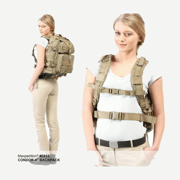 Раница Maxpedition CONDOR-II BACKPACK 23L Khaki е популярна раница с компактен дизайн и изненадващо просторен интериор, който може да събере всичко, което ви е необходимо, както и 3L резервоар за хидратация с b-насочен тръбен порт (не е включен). Това, което наистина прави Condor II уникален е, че е проектиран с повече външни PALS ремъци от всяка налична раница Maxpedition. Неговата носеща способност може да бъде разширена значително чрез използване на TacTie® ремъци за закрепване за взаимодействие с различни външни торбички, джобове и аксесоари на Maxpedition. Condor-II ще остане удобна за носене, независимо колко екипировка решите да опаковате или закачите, защото е ергономично проектирана с подплатени, извити презрамки на раницата, опора за гръдната кост и мека, дишаща подплата за гърба.