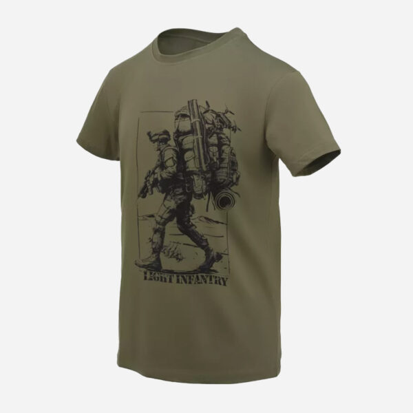 Тениската Helikon-tex Light infantry е памучна тениска с изображение на тежко натоварен войник, което е и препратка към състезанието на Лека пехота (Lekka Piechota). Характерната форма на тениските се развива в началото на 20-ти век от предишното бельо (известно като профсъюзен костюм). След Втората световна война памучните тениски във формата на буквата Т стават много популярни, отчасти благодарение на Марлон Брандо и Джеймс Дийн, които ги носят на екрана.