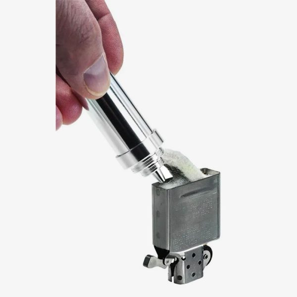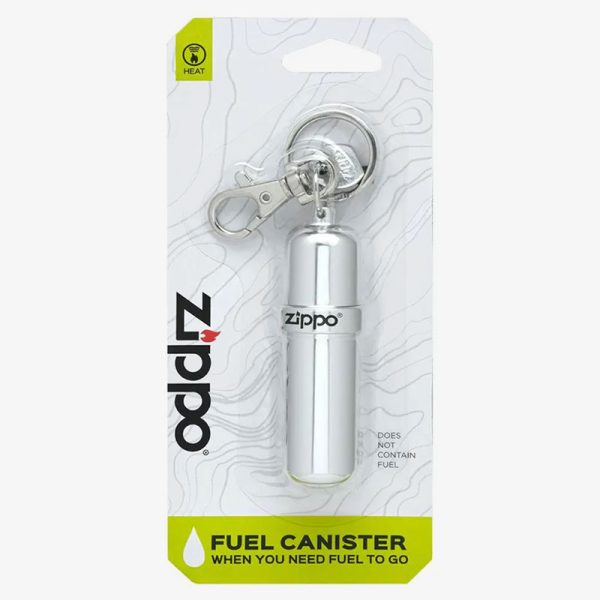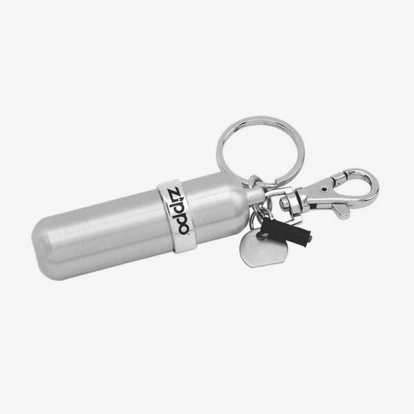 Мини тубата за гориво Zippo ключодържател е за многократна употреба с персонален размер съдържа достатъчно гориво, за да напълни една ветроустойчива запалка Zippo или 6-часова нагревател за ръце за многократно пълнене. Включва въртяща се закопчалка, ключодържател, диск за затягане и разхлабване на винт с кремък и гумена втулка за съхранение на два допълнителни кремъка Zippo.