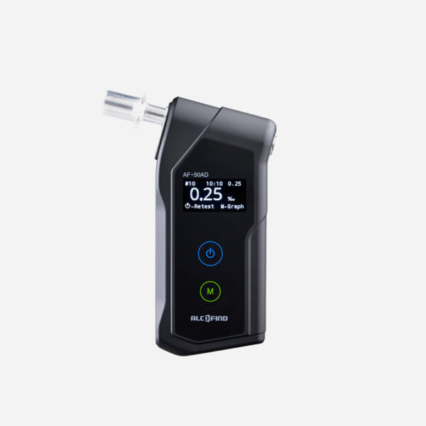 Професионалният Дрегер за алкохол AlcoFind AF-50 е оборудван с последно поколение електрохимичен сензор от серията ALCOFIND, осигуряващ екстремно висока надеждност и сигурност на резултатите, съчетано с вътрешна памет за последните 100 теста. AF-50 се препоръчва за използване в транспортни и такси фирми, охранителни структури, индустриални предприятия, болници, училища – навсякъде, където съществуват високи изисквания за контрол към употребата на алкохол. Моделът притежава изключително здрав и удобен за ползване корпус с добавена звукова и светлинна сигнализация. Специалният OLED-дисплей и вътрешната памет за резултатите правят AF-50 точния избор за професионална употреба при минимални първоначални разходи. AF-50 притежава сертифициране спрямо Европейските технически стандарти и намира широко приложение на Европейския пазар. OLED-дисплеят позволява информацията от апарата да бъде видима при всякакви околни условия, вкл. ярка дневна светлина. Апаратът съхранява пълната информация за 100 броя последно проведени теста за алкохол, което позволява последващ контрол на дейността от работодателя или контролния орган във фирмата / предприятието.