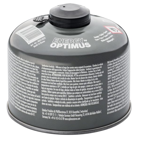 Новият 4-Season Gas от Optimus поддържа газовите котлони работещи през всички сезони. Висококачествената газова смес се състои от пропан, бутан и повишено количество изобутан, който има особено ниска точка на кипене. В резултат на това 4-сезонният газ осигурява стабилна работа дори при температури около точката на замръзване, за да работи надеждно с външни печки през всички сезони, както и по време на обиколки на голяма надморска височина. Тъмносивият цвят на патрона има затоплящ ефект върху газа при излагане на слънчева светлина и служи за по-добър камуфлаж през нощта. Капачката предпазва съдържанието и ви позволява да разберете дали касетата вече е използвана или е нова.