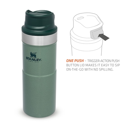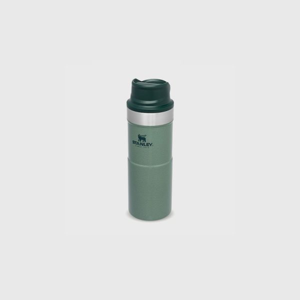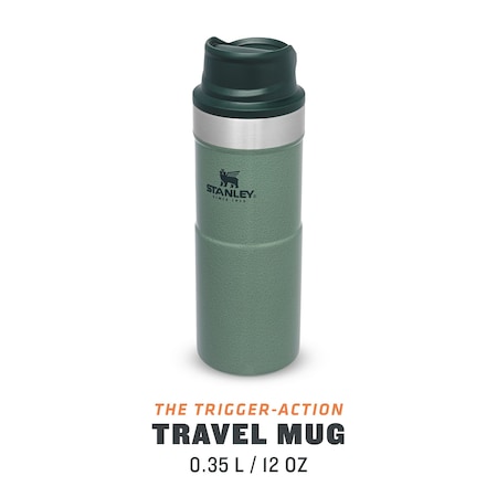 Термо чаша за път Stanley Trigger Action 0,35 л/12 унции водонепропусклива чаша за кафе, чай и вода, без съдържание на бисфенол А (BPA). Дизайнът на чашата Stanley Trigger Action ѝ позволява да се използва с повечето видове поставки за чаши, за да е с вас, докато пътувате. Вакуумната изолация с двойна стена запазва любимата ви напитка гореща до 5 часа, студена до 6 часа и заледена до 26 часа. Тя е точният спътник за вашите градски и извънградски авантюри. Можете да изберете от широка гама цветове и размери според вкусовете си. Чашата за пътуване със защита срещу протичане е лесен за използване с една ръка благодарение на капачката със заключващ механизъм. Капачето е с пуш бутон, който отключва приставката за пиене в горната част. Тази уникална функция прави чашата перфектна за отпиване в движение.