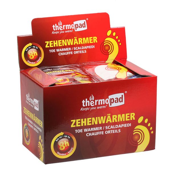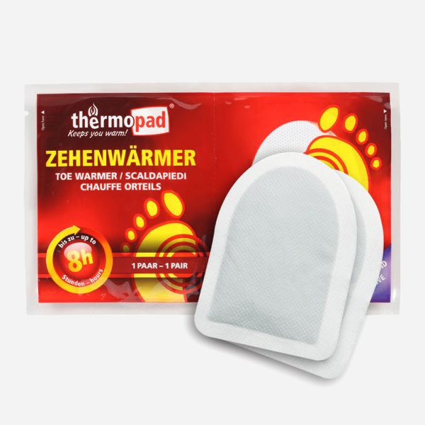 Отоплители за пръстите/петите на краката – Toe Warmer Thermopad – Германия, перфектно и удобно решение за студени крака. Тънки, със заоблен край и залепващо фолио за по-голям комфорт. Работят дори в среда с ниско съдържание на кислород, като обувки и ботуши. Предназначени за еднократна употреба, отдават топлина в продължение на 6 часа. Съдържат само натурални съставки, напълно безвредени, без мирис и щадящи околната среда. Полезен аксесоар за всички практикуващи активни дейности навън в студеното време. Добре е да ги имате в раницата или автомобила в случай на нужда. Предлага се в разфасовка от 2 отоплителя в пакет.