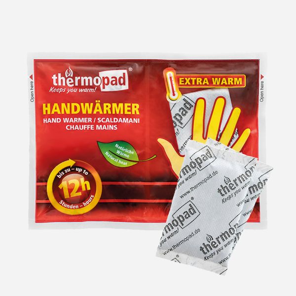 Отоплител за ръце – Hand Warmer Thermopad – Германия, компактно и удобно пликче, което може да се поставя в ръкавиците или джоба. Предназначен за еднократна употреба, отдава топлина в продължение на 8 часа. Съдържа само натурални съставки, напълно безвреден, без мирис и щадящ околната среда. Полезен аксесоар за всички практикуващи активни дейности навън в студеното време. Добре е да ги имате в раницата или автомобила в случай на нужда. Предлага се в разфасовка от 2 отоплителя в пакет.
