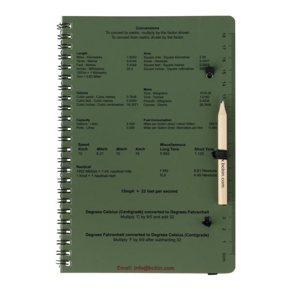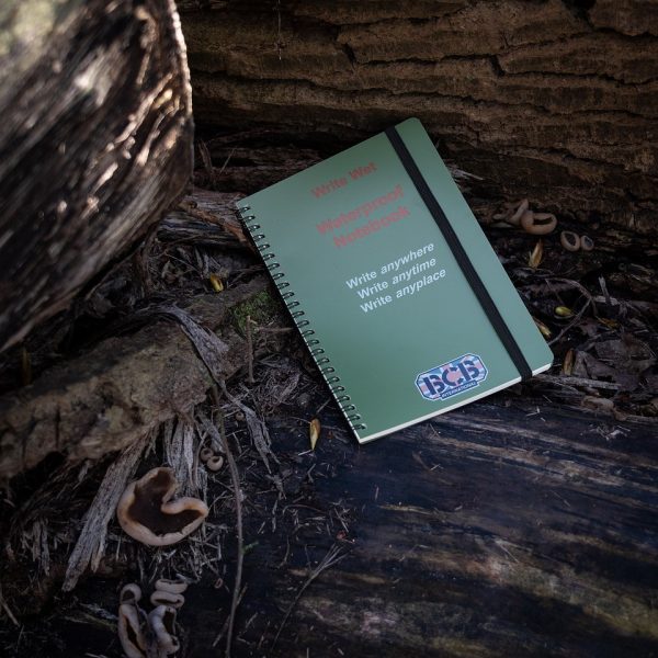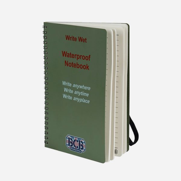 Водоустойчив тефтер от BCB. За взискателния авантюрист тази водоустойчива хартия е идеална за съхраняване на вашите мисли, планове и идеи, където и когато пожелаете. Без значение колко силно вали, винаги можете да напишете бележките си. Подходящи за писане с обикновени химикали, цветни моливи, моливи или перманентни маркери. Предлага се с молив BCB.