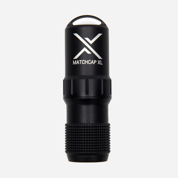 Алуминиевата кутия MATCHCAP XL™ е почти неразрушима водонепроницаема кутия за съхранение на клечки кибрит и други съоръжения за оцеляване. Кутията е запечатана с уплътнителен пръстен (О-RING), който предотвратява проникването на вода и влага на дълбочини до 5 м. Лека и здрава, може да побере и друга екипировка с дължина до 74мм. Подложката от шкурка на дъното за запалване на клечките кибрит е водоустойчива и чудесна, когато всичко е мокро, използва се като повърхност за запалване. Изработена от висококачествен алуминий 6061, обработена с ЦПУ машина, след това анодирана за защита. Производство в САЩ, в различни цветове.