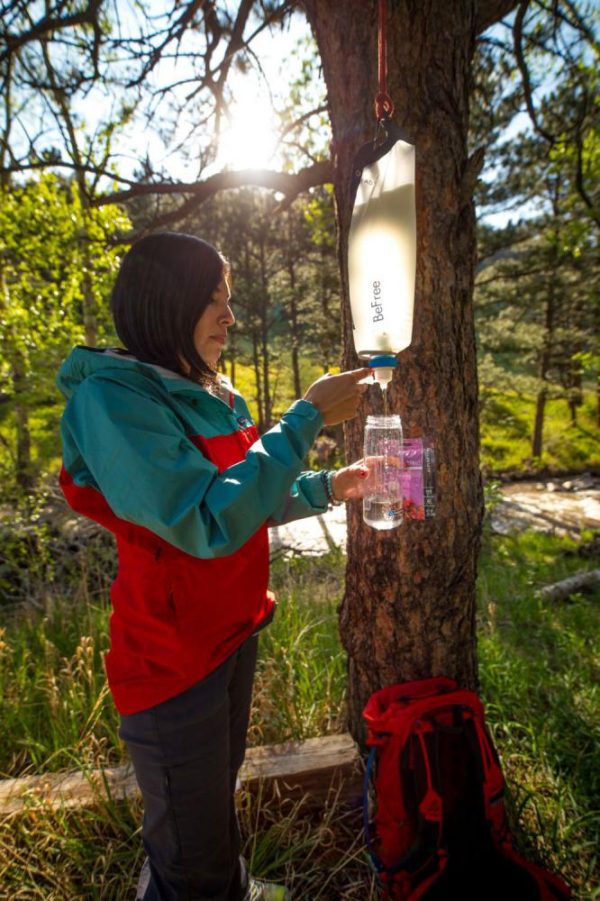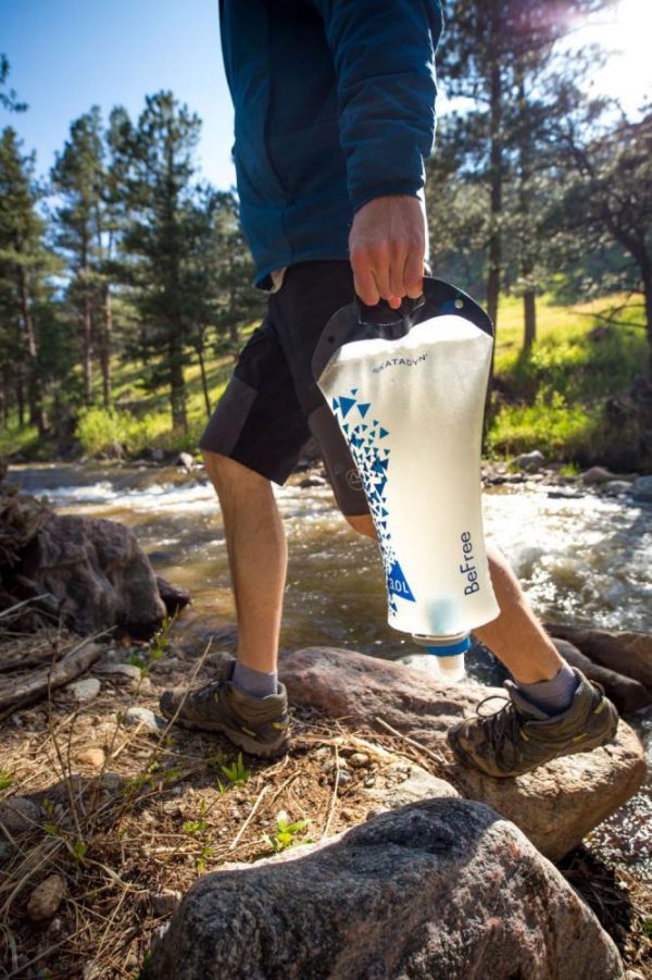 Гравитационната система за филтриране на вода Katadyn BeFree 3L пречиства до 2 литра чиста питейна вода на минута. Водата преминава през филтър с кухи влакна от 0,1 микрона, който надеждно отстранява бактерии, кисти и утайки с размер на порите си от 0,1 микрона (0,0001 mm). Капацитетът на филтъра е до 1000L в зависимост от качеството на водата. Интегрираната ръкохватка на дюзата улеснява пълненето. Практичната каишка за носене улеснява донасянето на вода от реката и филтърът може да бъде окачен на близкото дърво, след като се напълни.