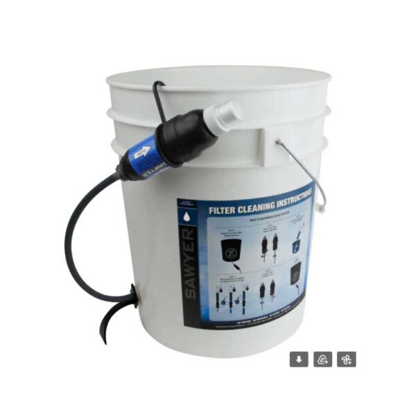 Комплектът аксесоари за Sawyer Squeeze позволява да свържете филтъра в съд като система за гравитационна филтрация. Свързването е изключително лесно и бързо. Подходящ е за използване с водни филтри Sawyer Squeeze или Mini. Необходим е съд, с помощта на свредлото в комплекта се прави дупка на около 4 сантиметра над дъното на съда (кофа). Премахват се всички парчета пластмаса около отвора, тъй като те могат да причинят теч. Взима се един от гумените пръстени и се поставя върху резбата на черния адаптер. След това резбата на адаптера се промушва през отвора отвън. Вторият гумен пръстен минава от вътрешната страна на съда около резбата на адаптера. След това пластмасовия болт се затяга към него. Поставя се сивия маркуч отвън над чучура на адаптера и сивия конектор на другия край на маркуча. Поставете мръсната вода в кофата и всичко, което трябва да направите, е да свържете водния филтър (не е в комплект), за да филтрирате водата!