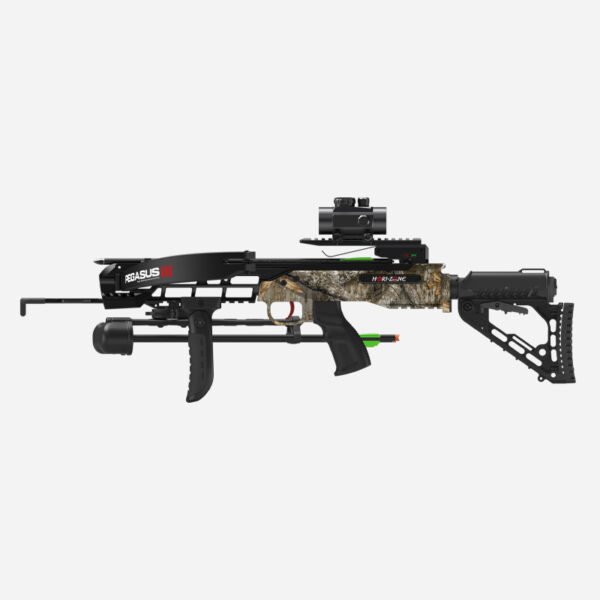 Арбалетът HORI-ZONE PEGASUS III е подобрена версия на арбалета Pegasus 2 и включва регулируем по дължина приклад, и амортисьори на тетивата, позволяващи изстрелването на стрелите със скорост от 275 FPS. Предлага се с точков мерник, колчан и три карбонови стрели.