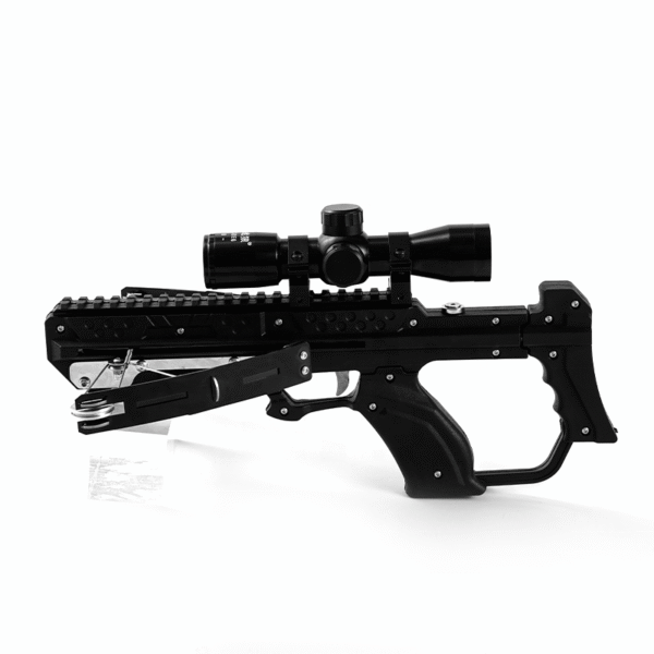 Арбалетът WUSAN Avengers е създаден за тези, които изискват контрол и точност. Компактен и мощен, този мини арбалет произвежда изстрели със скорост 250 FPS, което го прави идеален за прецизна стрелба. Изработен от високоякостен найлон и подсилен с неръждаема стомана, Avengers притежава издръжлива, но лека конструкция. Компактният му дизайн и мощният изстрел се допълват от дъгообразни крайници на лъка от никелирана манганова стомана 65Mn, осигуряващи повишено напрежение и издръжливост. Оборудван с weaver/picatinny база за оптичен прицел, той е готов за добавяне на оптика за повишаване на точността, а включените в комплекта две тетива и 100бр стоманени сачми осигуряват всичко необходимо за започване на работа. Проектиран с цел адаптивност, Avengers стреля както с 16,5-сантиметрови (6.5″) арбалетни стрели, така и с 6-милиметрови стоманени или оловни сачми, предлагайки универсални възможности за различни стилове на стрелба. За да използвате максималната мощност на арбалета, след зареждане приберете мрханизма за зареждане в изходно положение!