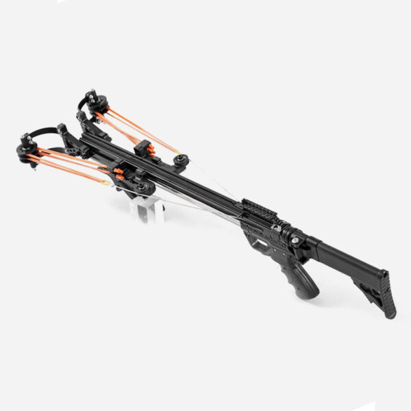 Полуавтоматичната прашка WUSAN Gentian Slingshot разполага с вграден пълнител, който ви позволява да заредите предварително до 40 патрона с 8 мм сачми или една стрела. Задната ръкохватка включва 11-милиметрова монтажна релса, за да можете да инсталирате оптичен прицел с лазерен мерник или тактическо фенерче. Тази прашка е създадена, за да издържи и на най-тежките условия. Колко прашки сте виждали напоследък със стоманено въже, прикрепено към ОСЕМ комплекта ластици?