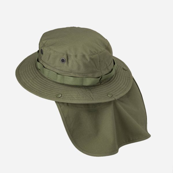 Шапката боне Helikon-tex Зелена е качествена, комфортна и лека, разполага с 4 клапана за вентилация от двете страни на шапката, за да се проветрява главата Ви. Разполага с регулируема връзка за брадичката и лента, която се ползва за щит на врата от слънцето, която може да се слага и маха от шапката чрез копчета. Широка и усилена периферия на шапката.