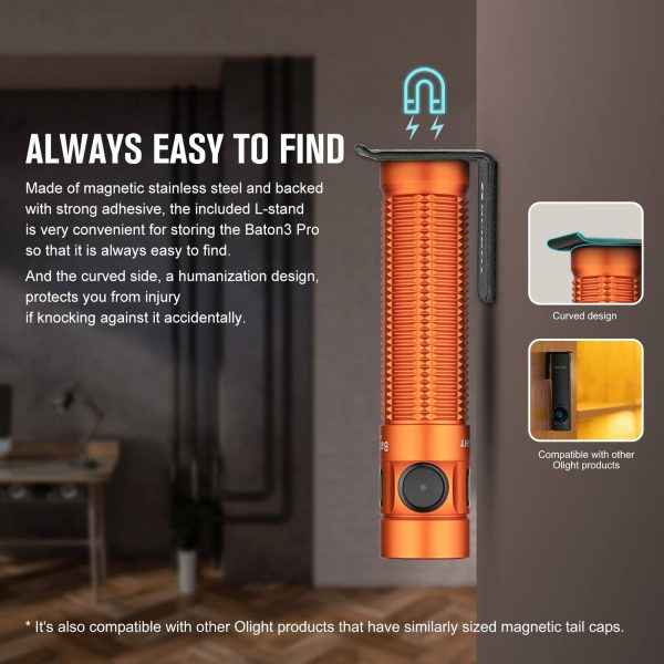 L – магнитна стойка Olight е тип държач подходящ за всички модели фенери с магнитно зарядно. Тя може да бъде залепена на почти всяка гладка повърхност в домът ви, на вилата или в офиса. Изработен от неръждаема стомана.