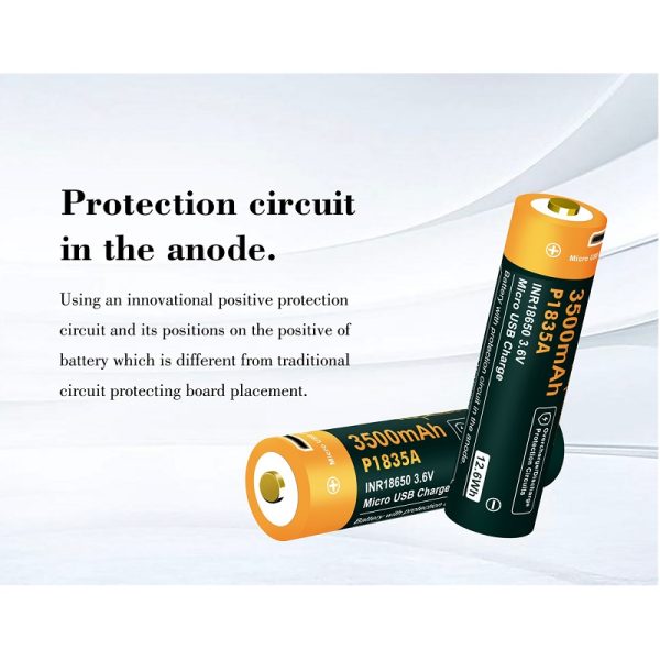 Chargeable battery VAPCELL P1835A 18650 3500mAh protection and MICRO USB