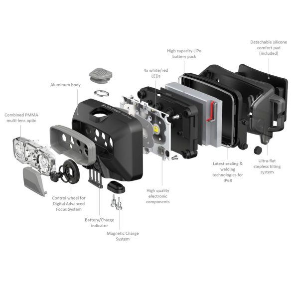 Зарядният челник LED LENSER HF6R CORE е интуитивен и компактен челник за редовни преходи, разходки или работа. Той се отличава с особено лек и елегантен алуминиев корпус, както и с три нива на яркост и червена предна светлина. Светлинният лъч може да бъде фокусиран в тесен или широк сноп, интуитивно с помощта на диод за цифрово фокусиране вградено в челника. Безстепенно регулиращата се глава на челника позволява насочване на лъча светлина точно там, където е необходимо. Челникът разполага с индикатор за състоянието на батерията, така че да знаете кога да я заредите отново. Бутонът за включване може да се програмира в транспортен режим, което предотвратява неволното включване на челника, докато се съхранява в раница. Тънката лента за глава може да бъде индивидуално коригирана за ваше удобство.