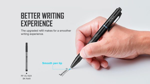 Olight OPEN PRO е фенер и зелен лазер за целопоказване в едно. Тя може да се ползва, както в комбинация с фенерчето, така и отделно. То лесно може да се свали от корпуса при нужда или за презареждане. Корпусът е с подобрена ергономия, за по-лесно писане. Фенерчето е с топла Warm Led светлина и е изнесено на клипса на химикалката. С този дизайн можете да ползвате осветлението му, докато химикалката е закачена на външния джоб на ризата или якето ви. Химикалката се включва с помощта на L-тип болт екшън лостче. Фенерчето се включва, чрез натискане на L-болта нагоре. Двоен клик включва турбо режима. Натискане и задържане активира зелената лазерна показалка. Чрез единични кликове можете да избирате от четирите нива на сила на светене от 5 до 120 лумена. Също така то може да се отдели от химикалката и да ви помогне да пишете при липса на друго осветление. Фенерчето е с вградена Li-Po батерия с капацитет 110ma/h, която се презарежда с USB-C тип зарядно. Индикаторът за зареждане ще ви покаже, кога батерията е напълно заредена. Химикалката е здрава и лека – едва 38грама, подходяща за всекидневно ползване. С удобен стоманен клипс и 3737 Cool White LED. Използван писец OLIGHT RF-OL8127 BK Refill, съвместим с SCHMIDT CL8126 Mini Refill.