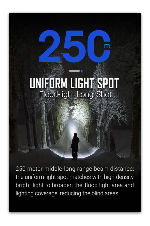 - Дистанция на осветяване: 250 м.