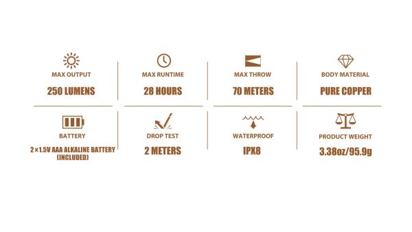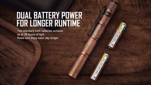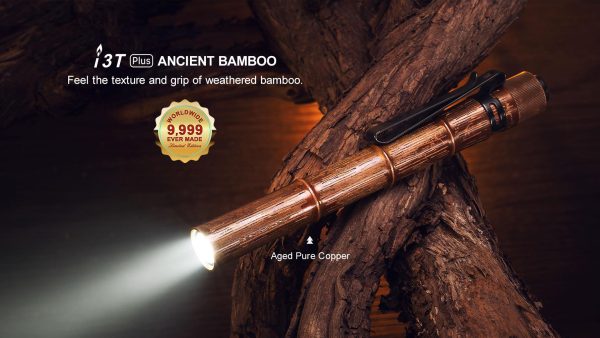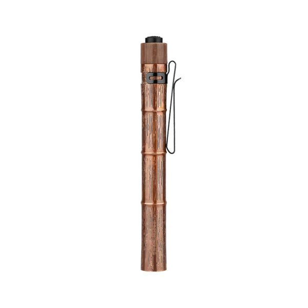 Фенерът Olight i3T Plus 250 Лумена e тънък всекидневен EDC фенер, захранван от две батерии 1,5V AAA, които са в комплект. Неговият високопроизводителен светодиод, съчетан с PMMA оптика, дава мек и балансиран лъч с режими 250 or 15 лумена. Със захранване от две батерии за разлика от една при Olight i3T, времето на работа е увеличено до 28 часа. Дизайна на корпуса е двойна спирала която осигурява сигурен захват и удобство в ръката. Позволява лесно да го държане с три пръста и да използване за инспектиране на тесни пространства. А самият корпус е от медна сплав лимитирана серия, всяка отделна бройка е ръчно състарена с помощта на огън и вода и е уникална сама по себе си. Фенерчето също така разполага с двустранна джобна щипка, която може лесно да се закопчае върху джоб или ремък за раница. Мощен, стилен, с размери на химикалка и с удължено време на работа, i3T Plus е страхотна EDC светлина за справянето с ежедневни задачи.