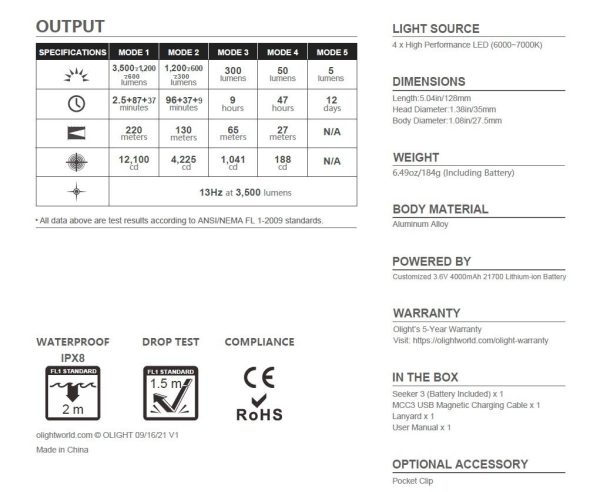 Характеристики на фенерче Olight Seeker 3 3500 Лумена Black
