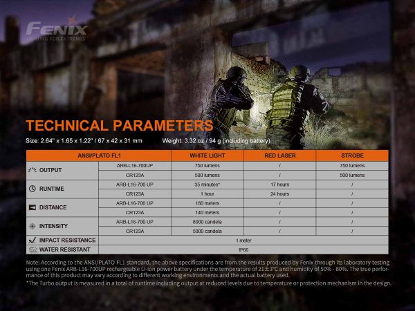 Характеристики на Пистолетен фенер с лазерен целеуказател Fenix GL22 Red Laser 750 Лумена