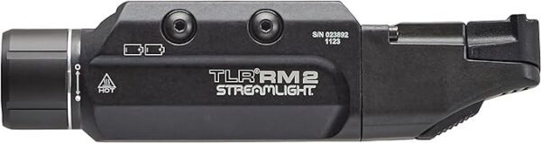 Оръжейният фенер Streamlight TLR RM 2 разполага с лицева капачка от HPL за по-дълъг и по-насочен лъч. Той е проектиран да произвежда по-голям светлинен интензитет (Кандели), като същевременно поддържа същия светлинен поток (Лумени). Независимо работещи бутони и дистанционни превключватели осигуряват сигурността да знаете, че винаги ще имате светлина. Машинно обработен авиационен алуминий от серия 6000 с анодизирано покритие тип II Mil-Spec. Корпус на превключвателя: Устойчив на удар и химикали полимер. Високотемпературно, ударно монтирано AR покритие, удароустойчиво стъкло BOROFLOAT®. Многофункционален тактически заден превключвател с бутон или дистанционен превключвател. Бързо натискане на бутонния превключвател за постоянна работа и натискане със задржане за моментна работа. Докоснете два пъти превключвателя в рамките на ¼ секунда, за да активирате строб режима.