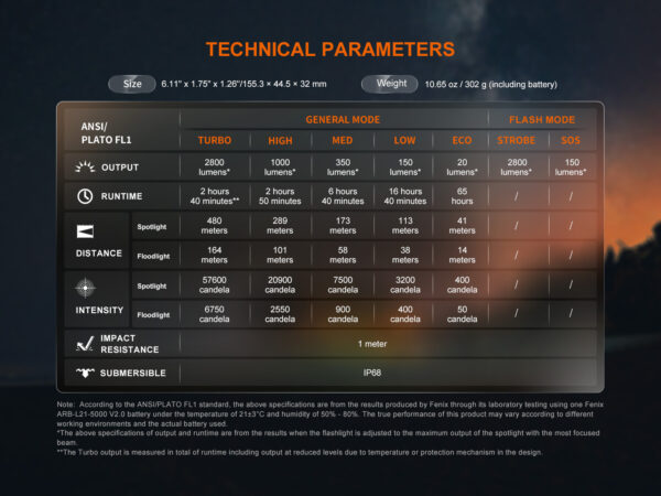 - Турбо: 2800 лумена, 2ч. 40мин., 480м.