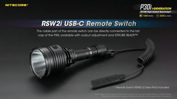 Зарядният фенер P30i е новоразработен фенер i-Generation 21700 с висока мощност. Използвайки CREE XHP35 HI LED и оптична система, комбинирани с кристално покритие и „Precision Digital Optics Technology“ (PDOT), той има максимална мощност от 2000 лумена, максимален обхват от 1000 метра и максимален пиков интензитет на лъча от 250 000 cd, подходящ за търсене и спасяване на дълги разстояния, проследяване и лов. Двуфункционалният USB-C порт се предлага с обратим порт за директно зареждане или свързване към кабелната част на Remote Switch RSW2i. Капакът на порта за зареждане осигурява отлична устойчивост на вода, прах и удар. P30i се захранва от батерия 21700 i Series и е съвместим с 2 x CR123/RCR123 батерии. Той предлага 100 часа удължено време на работа, постоянна употреба от 4 дни на ULTRALOW ниво (6 лумена). Удобният за потребителя интерфейс с два бутона, включващ тактически заден превключвател и страничен превключвател, контролира 5 нива на яркост и 2 специални режима за различни сценарии. Кабелната част на дистанционния превключвател RSW2i може да бъде директно свързана към задната капачка на P30i, като се предлага с регулиране на мощността и STROBE READY™. Комплектът P30i предоставя професионално решение за осветление за търсене с допълнителна стойка за пистолет, червени и зелени филтри, освен стандартните аксесоари. Вградената ATR технология регулира мощността на P30i според работните условия и околната среда, за да поддържа оптимална производителност. Приложим е за всякакви метеорологични условия, със степен на защита IP68, потопяем и водоустойчив на 2 м и устойчив на удар от 1 м.