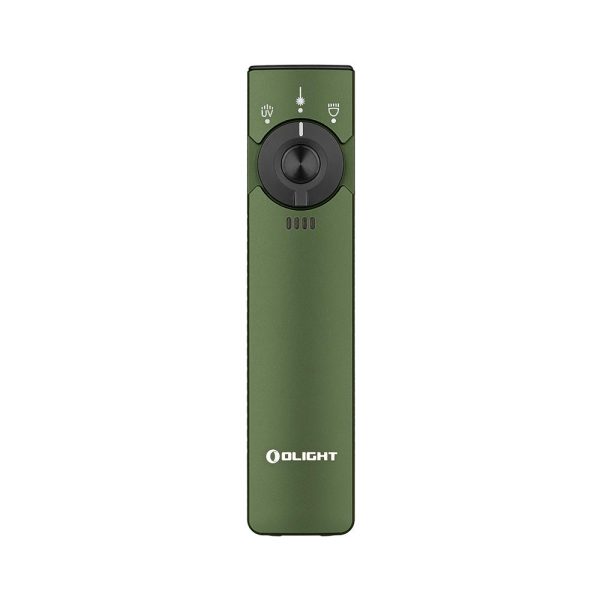 Зарядният фенер Olight Arkfeld Pro 1300 Лумена е всекидневен EDC фенер, който предлага три различни източника на светлина: бяла светлина CW, зелен лазер Class1 и UV – 900mW с 365nm дължина на вълната. Креативният дизайн на превключвателя (централен бутон и селектор) е едновременно практичен и красив. Зареждането е с магнитно USB зарядно на Olight. Фенерчето е плоско и има щипка за носене. Може да се закрепи удобно, към джобовете ви. Магнит в задната част, позволява прикрепване, към метални повърхности. Със страхотен дизайн плюс множество светлинни функции, Arkfeld може да бъде ненадминат избор за EDC фенерче. UV светлина: 365 nm дължина на вълната и мощност 580 mW UV светлината помага за откриване на петна от урина на домашни любимци върху килими, които са невидими с просто око и е идеален за проверка на чистотата в хотела, проверка на банкноти, минерали и др. Лесно превключвайте между трите режима на осветяване с помощта на интуитивния кръгъл селектор.