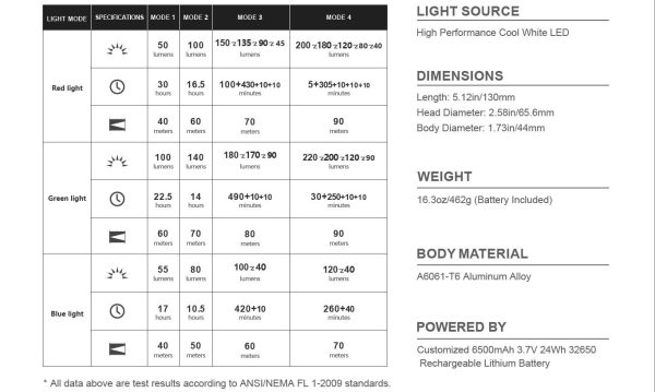 • Battery: 24Wh 32650 Lithium