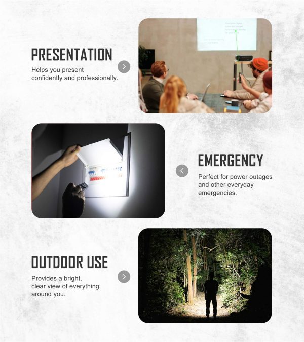 • 5 standard light modes: 1000/ 300/ 60/ 15/ 1 /Lumen