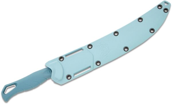 Ножът Benchmade Fishcrafter MagnaCut Depth Blue Santoprene стоманено острие CPM-MagnaCut със заострена точка с технология SelectEdge, Fishcrafter се справя отлично при рязане на средна до голяма риба, където тази допълнителна дължина прави гладък разрез за чисто филе. Мотото му е: „Ловете повече, острете по-малко.“ Формованата кания е изработена от Sonar Grey има два прореза от двете страни за алтернативна опция за монтаж и малък отвор на върха за източване на излишната вода и защита на острието между употребата.