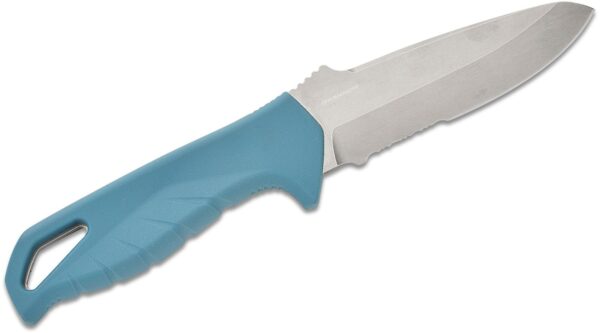 Ножът Benchmade Undercurrent MagnaCut Santoprene Blue, е здрав и фиксиран, проектиран специално за морска употреба, способна да издържи на корозивните свойства на солената вода. Острие направено от висококачествена стомана CPM MagnaCut, Undercurrent е идеален за рязане на въжета, въжета и стръв с частичните си назъбвания. В комплект с формована кания Sonar Grey, която предлага разнообразни опции за монтаж на вашия колан, раница или лодка, Undercurrent разполага и с бутон за освобождаване на задържане за бърз и лесен достъп до ножа. Създаден да се справя с суровите условия на морска среда, Benchmade Undercurrent е надежден инструмент за всеки любител на открито.