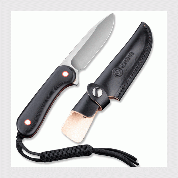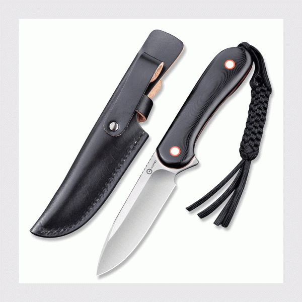 Фиксираният нож Elementum Fixed Blade от CIVIVI е оборудван със здрава ръкохватка изработена от G10, оранжевите акценти около щифтовете украсяват дръжката, дизайнерски елемент флипер, който за този нож функционира като предпазител за пръста. Острие от 10Cr15CoMoV с твърдост на стоманата 59-61HRC и Satin финиш. Здравината, надеждността, функционалността и не на последно място страхотната цена правят Elementum отличен избор за ежедневна употреба. Канията е изработена от кожа в премиум каечество.