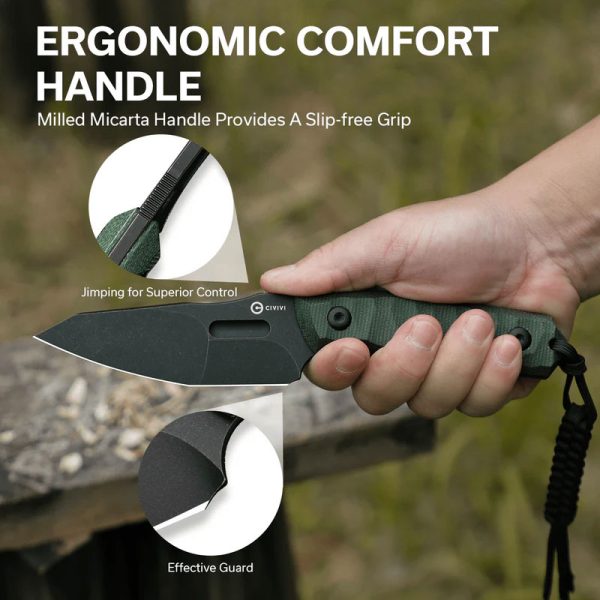 Ножът Civivi Propugnator D2 е средно голям фиксиран нож за оцеляване, който се усеща страхотно в ръка. Това, което незабавно се откроява в този нож, е обратното танто острие, изработено от D2 стомана. Това е здрав вид стомана, която запазва добре своята острота, лесно се заточва, което е чудесно когато го използвате ежедневно. D2 не е напълно неръждаема, винаги почиствайте ножа след употреба, особено когато е бил в контакт с киселини, сол или влага. Ръкохватката е изработена от Micarta, композитен материал от лен и синтетична смола и предлага достатъчно сцепление.