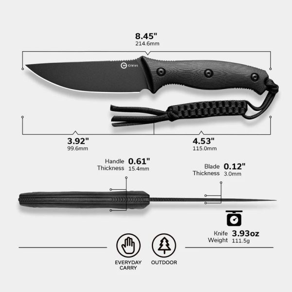 Ножът Civivi Stormridge Fixed Nitro-V G10 Black е проектиран да се справи с всяко предизвикателство, с което бихте могли да се сблъскате в ситуация на оцеляване. Stormridge е с full-tang конструкция, а острието е с дебелина 3 мм, направено от Nitro-V стомана, здрава и запазва добре остротата си. Ръкохватката е направена от G10, изработен от фибростъкло и синтетична смола, леката текстура се чувства страхотно в ръка и ви предлага достатъчно сцепление за сигурен и здрав захват. В комплект с кания от kydex.
