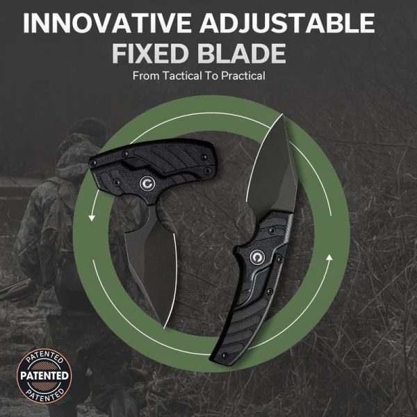 Ножът Civivi TYPHOEUS ADJUSTABLE 14C28N G10 е уникален и многофункционален нож, който може да се трансформира от фиксирано острие в кама, само с едно просто движение. Острието е изработено от стоманата Sandvik 14c28n, която е лесна за заточване и изключително устойчива на корозия. За изработката на ръкохватката е използван здравият G10 материал, осигуряващ отличен захват при работа. Typhoeus е създаден да покрива изискванията за тактическата употреба.