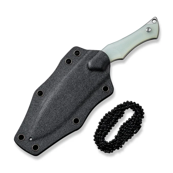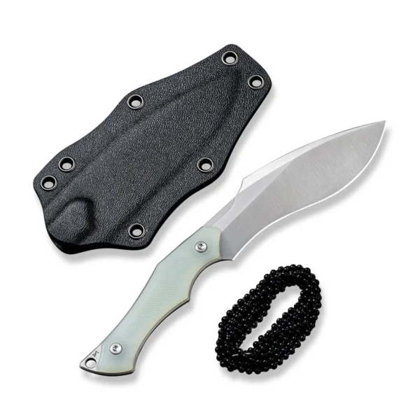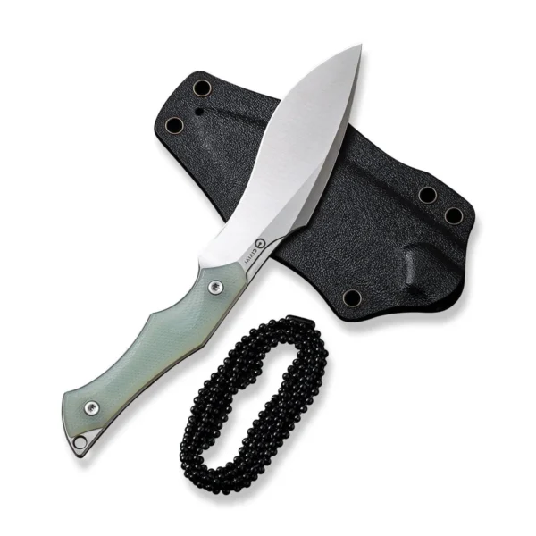 Ножът CIVIVI Vaquita II Nitro-V G10 носи името на най-малкия кит в света. Самото име на гениалния нож CIVIVI Vaquita 2 G10 е впечатляващо. Този нож с фиксирано острие се отличава с уникалното си кукри острие с дължина 8,1 см, изработено от висококачествена стомана Nitro-V. Благодарение на извитото острие и финото сатенено покритие всяко действие по рязане или сечене се превръща в преживяване. С удобната си обща дължина от само 15,8 см Vaquita 2 е компактен и идеален за всяка дейност на открито – нож, който не е прекалено голям, но не е и прекалено малък. Конструкцията full tang осигурява допълнителна стабилност и издръжливост, така че винаги можете да разчитате на своя Vaquita. Този нож е не само функционален, но и стилен. Дизайнерът Нейт Матлак е обърнал внимание на всеки детайл в дизайна, за да ви даде нож, който не само изглежда добре, но и се усеща чудесно в ръката. За да е пълен пакетът, Vaquita 2 се предлага с практична кания от Kydex с верижка. Това позволява ножът да се носи на врата като несесер. Независимо дали сте на поход през джунглата, или на къмпинг в гората у дома – CIVIVI Vaquita 2 G10 е перфектният малък спътник на открито, който вярно ще стои до вас.