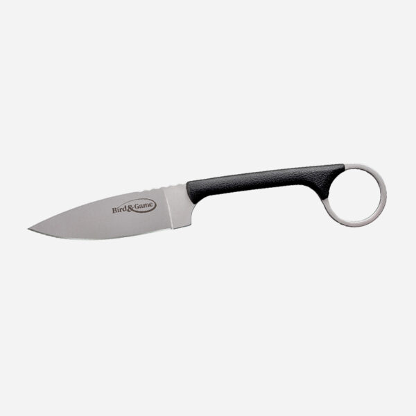Ножът Cold Steel Bird and Game е подходящ лек нож, когато теглото е наистина важен фактор. Простата му конструкция с пълен танг прикрива множество дизайнерски нюанси, които скоро ще станат очевидни за всеки ловец, любител на оцеляването или човек на открито. Просто казано, щом този нож се озове в ръката ви – ще го обикнете! Вдъхновен от много обичания нож Bird & Trout на Cold Steel® и почерпил дизайнерски идеи от серията Spike, той е проектиран за употреба при дребен дивеч, но е повече от способен да обработва едър дивеч в краен случай. Интегрираният пръстен (в съчетание с текстурираните полимерни чирени на дръжката) позволява на притежателя да запази сигурен захват на острието и дори да го остави да виси на пръста, докато работи по особено сложни или деликатни задачи.
